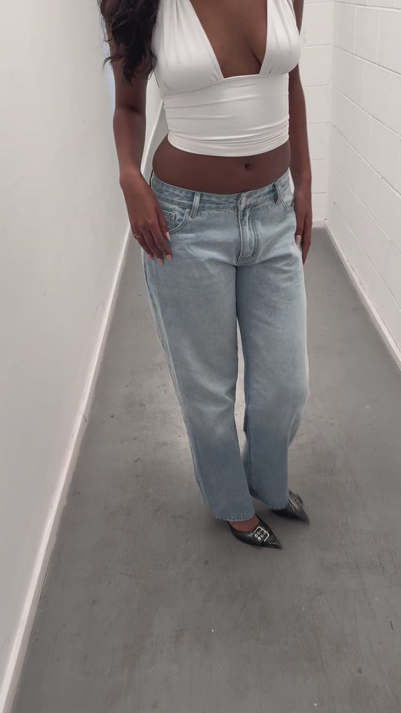 In a washed-out, very light blue finish, the Kate jeans have a vintage, worn-in edge that makes them easy to style with anything, from tees and chunky trainers to sleek bodysuits and heels. The wide leg drapes perfectly, making them a standout denim essential.